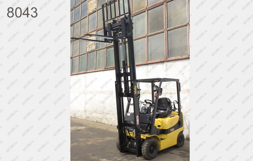 Газ-Бензиновый автопогрузчик Yale Б/У с интентарным номером 8043 2011 года выпуска. Состояние - Хорошее. Имеет грузоподъемность 1500 кг. Гарантия: 3 мес или 500 м/час.